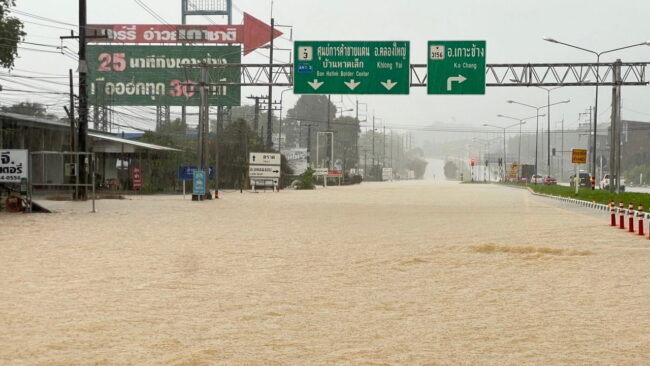 ตราด-ฝนตกติดต่อกัน 4 วัน น้ำป่าเทือกเขาบรรทัดหลากกท่วมแล้วหลายพื้นที่ ทั้ง อ.เมือง อ.เขาสมิง ถนนหลายสายท่วมสูง เหตุน้ำระบายไม่ทัน ขณะบ้านเรือนได้รับผลกระทบจำนวนมาก