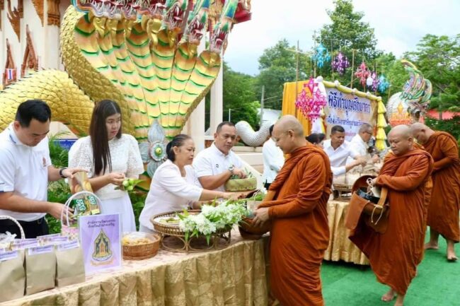 อำนาจเจริญ-พุทธศาสนิกชนร่วมทำบุญตักบาตร ถวายเทียนพรรษาและผ้าอาบน้ำฝน เนื่องในวันสำคัญทางพระพุทธศาสนา วันอาสาฬหบูชา และวันเข้าพรรษา ประจำปี 2567
