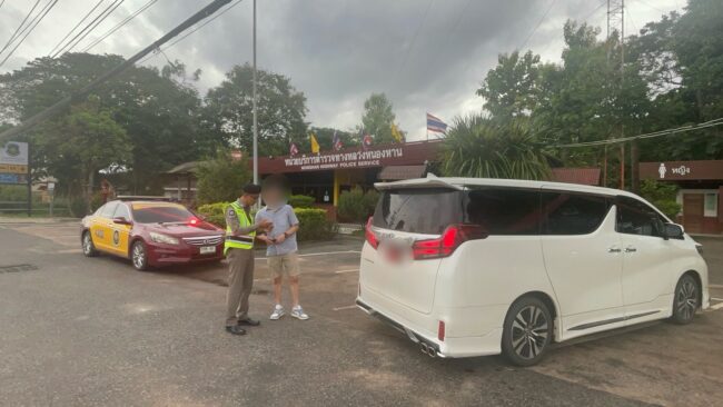 ผิดกม.!ตำรวจจับกุมหนุ่มใหญ่ขับรถสวมป้ายแดงปลอม เก็บป้ายจริงไว้ที่บ้าน
