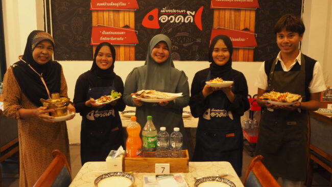 เราเคยนำเสนอร้าน อวดดีเมี่ยงปลาเผาเมื่อ5 ปีที่แล้ว ตอนนั้นร้านเปิดใหม่ มีซิกเนเจอร์ เป็นเมี่ยงปลาเผาเจ้าแรกในจังหวัดนราธิวาสที่ทำยอดขายกวาดไปวันละ8-9หมื่นบาทต่อวัน สาเหตุเพราะร้านอวดดีกล้าที่จะนำเสนอ เอาเมี่ยงปลาเผาแล้วมาจัดเป็น “บุฟเฟ่ต์” เติมไม่อั้น เส้น ผัก น้ำจิ้ม จนทำให้ชาวนราธิวาสรู้จักถึงความอร่อย อิ่มคุ้มของเมี่ยงปลาเผาร้าน “อวดดี” กันดี