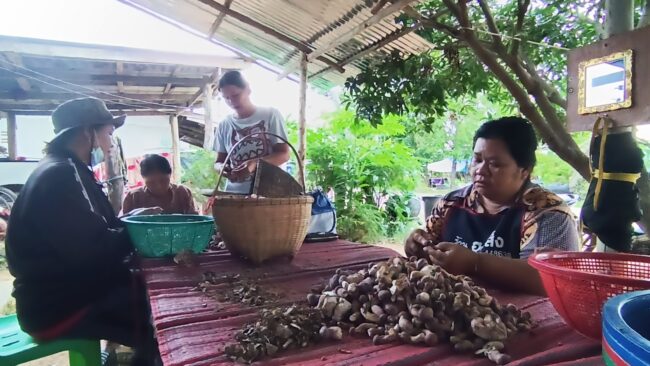 อย่างเช่นนางประนอม ลอยกระโทก อายุ 58 ปี หนึ่งในชาวบ้านตลิ่งชัน ที่วันนี้พากันยกครอบครัวออกไปหาเห็ดผึ้งขมกันตั้งแต่เช้า และได้เห็ดขมกลับมาบ้านรวมกันเกือบ 50 กิโลกรัม เช่นเดียวกันกับออกหลายบ้าน ที่ต่างพากันนั่งทำความสะอาดเห็ดอยู่หน้าบ้านกันอย่างคึกคัก