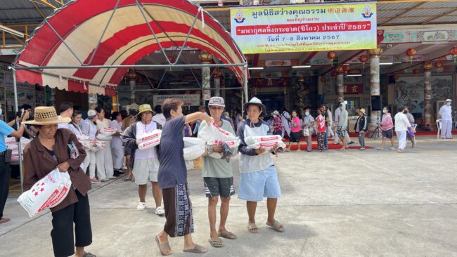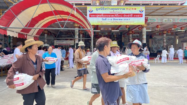ชัยภูมิ:มูลนิธิสว่างคุณธรรมฯจัดพิธีทิ้งกระจาด (ซิวโก)) แจกข้าวสารอุทิศบุญบรรพบุรุษ ลดรายจ่ายปชช.