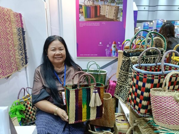อีกหนึ่งในผลงานกลุ่มแม่บ้านที่รวมตัวกันเป็น “กลุ่มวิสาหกิจชุมชน” ยึดอาชีพสานกระเป๋ากก ของชาวบ้านเหล่าพัฒนา อำเภอนาหว้า จังหวัดนครพนม ก่อนหน้านี้เคยฝากผลงานชิ้นโบว์แดงระดับชาติ ถูกคัดเลือกเป็นของที่ระลึกในการประชุมระดับรัฐมนตรีและเจ้าหน้าที่จาก 21 เขตเศรษฐกิจเอเปด ที่มีผู้ร่วมประชุมเดินทางเข้าประเทศไทยจำนวนมาก