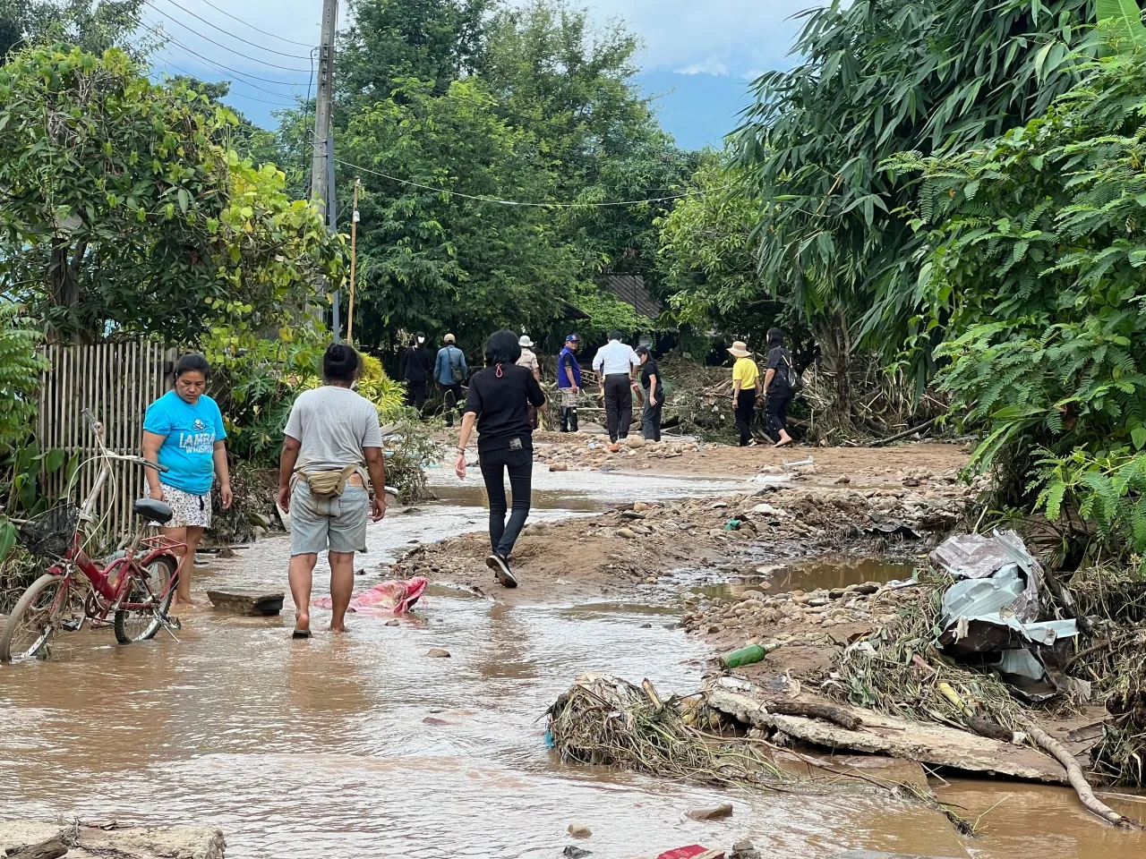 ต่อมาเมื่อเวลา 14.00 น. นายศตวรรษ อภิวงค์ ปลัดอำเภอฝ่ายความมั่นคง พร้อมด้วยสมาชิก อส. ร้อย.อส.อ.ฝาง 3 ร่วมกับนายกองค์กรปกครองส่วนท้องถิ่น เจ้าหน้าที่ตำรวจ สภ.ฝาง เจ้าหน้าที่ทหาร ร้อย.ม.4 ฉก.ไชยานุภาพ กำนัน และผู้ใหญ่บ้าน และภาคเอกชน ได้ลงพื้นที่ติดตามความเสียหายของบ้านเรือนราษฎร พื้นที่ทางการเกษตร สะพาน และถนน ดังนี้