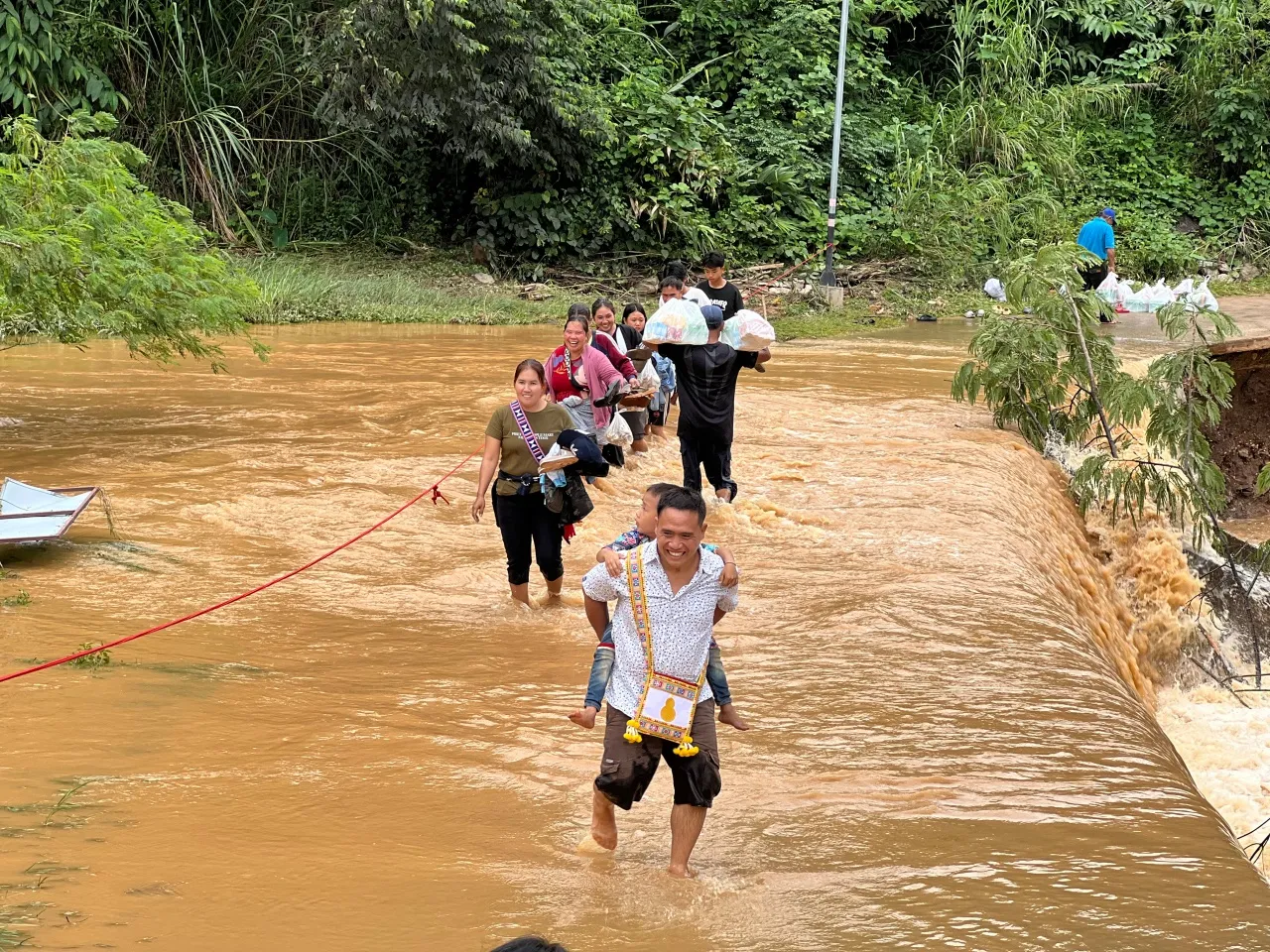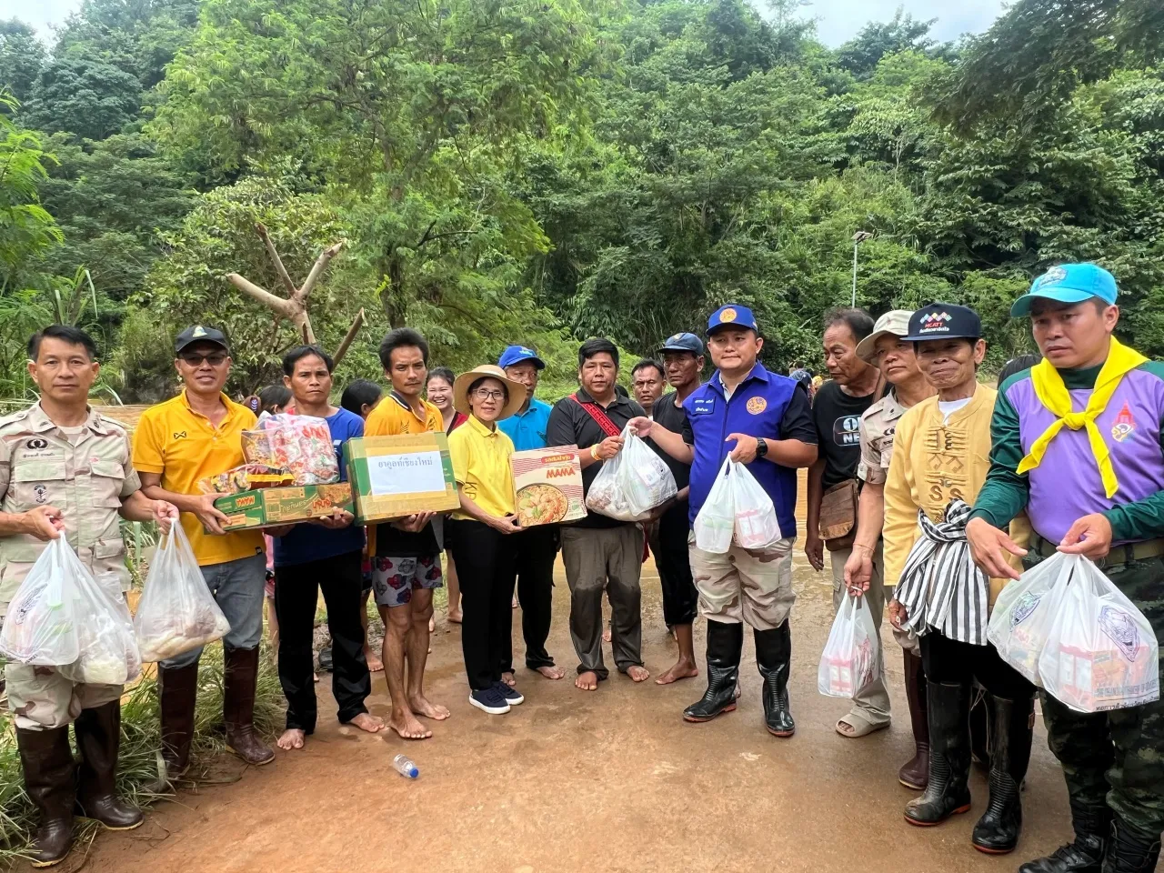 พร้อมให้กำลังใจและมอบถุงยังชีพ อาหารแห้ง น้ำดื่ม และสิ่งของจำเป็นให้กับผู้ประสบภัย พร้อมฝ่ายปกครองลงพื้นที่สำรวจความเสียหายและมอบอาหารแห้งน้ำดื่ม ให้กับชุมชนที่ประสบอุทกภัยในพื้นที่ ในเส้นทางที่มีน้ำหลากทาเข้าไปยังหมู่บ้านห้วยนกกก และยังลงพื้นที่สำรวจความเสียหายของบ้านเรือนที่อยู่ลำน้ำมาว ในพื้นที่ ต.ม่อนปิ่น อ.ฝาง เพื่อให้ความช่วยเหลือต่อไป