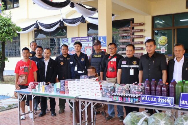 ปรางค์กู่ลุยกวาดล้างสิ่งผิดกฎหมาย! จับน้ำกระท่อม–บุหรี่เถื่อน ยึดของกลางเพียบ