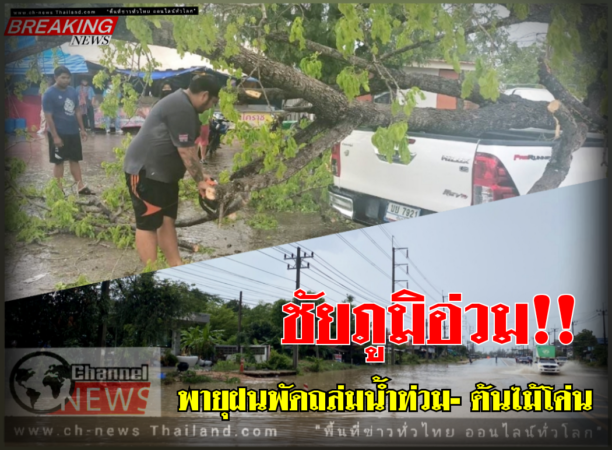 ชัยภูมิ:ชัยภูมิอ่วมพายุฤดูร้อนถล่มทำน้ำท่วมถนนซัดต้นไม้ใหญ่ล้มทับรถยนต์เสียหาย 18 ม…